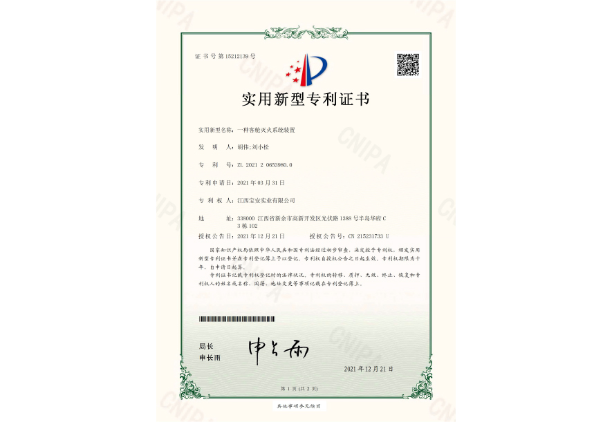 一种客舱灭火系统装置